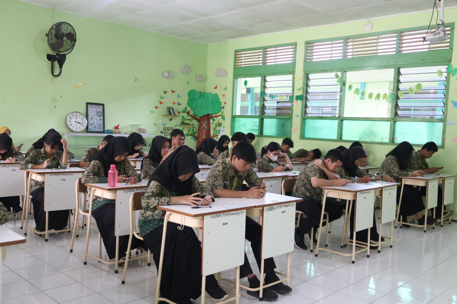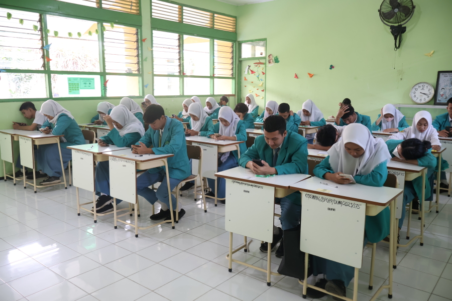 Kegiatan tersebut dilaksanakan diruang kelas yang telah dipersiapkan oleh panitia dan bagian sarana prasana sekolah. PSAT semester ini berbasis online dengan menggunakan perangkat Laptop/Gawai peserta didik. Pada semester Genap ini PSAT diikuti oleh seluruh Peserta didik angkatan 2022 dan angkatan 202 .
