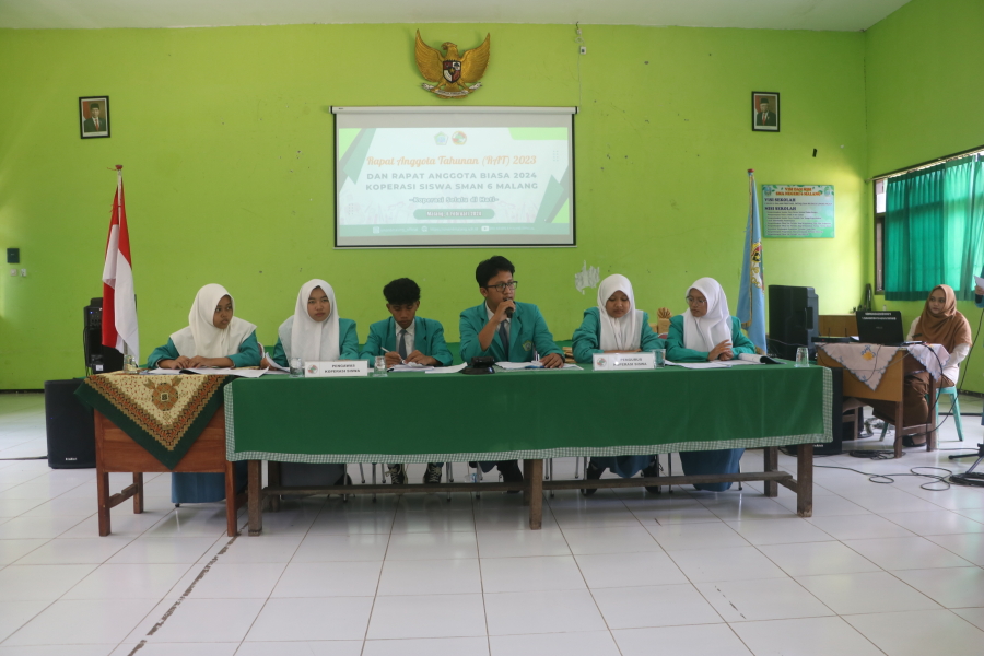 RAT ( RAPAT ANGGOTA TAHUNAN ) KOPERASI SISWA SMA NEGERI 6 MALANG Admin SMAN6MLG 07 Februari 20240 Comments1546 PembacaTanggalSelasa, 06 Februari 2024Waktu10:43:30TempatSMA NEGERI 6 MALANG Hari Selasa, 6 Februari 2024 Koperasi Siswa SMA Negeri 6 Malang mengadakan Rapat Anggota Tahunan ( RAT ) tahun 2023. Kegiatan tahunan ini dihariri oleh Kepala Sekolah, Perwakilan dari Disperindag dan Dekopenda Kota Malang. Selain itu hadir juga perwakilan dari kelas X, XI dan XII untuk mengikuti kegiatan tersebut.Dalam sambutannya, perwakilan dari Disperindag menyampaikan bahwa Koperasi Sekolah merupakan wadah untuk mengasah kemampuan berwirausaha, belajar berorganisasi dan juga belajar tentang pembukuan. Harapannya Koperasi Siswa SMA Negeri 6 Malang dapat semakin berkembang dan menjadai wadah bagi siswa siswinya untuk mengasah kemampuannya dalam bidang perkoperasian. (*dpw)Bagikan : Previous postNext post KomentarForm KomentarAgenda Baru1610-2024Outdoor Learning (ODL) Kelas X Th. 2024: Menggali .. 17:09:300106-2024MEMAKNAI HARI LAHIR PANCASILA 1 JUNI 2024 14:30:002705-2024PENILAIAN SUMATIF AKHIR TAHUNAN (PSAT) SMA NEGERI .. 14:03:151105-2024PURNAWIYATA ANGKATAN 2021 SMA NEGERI 6 MALANG TAHU.. 9:23:150905-2024LKBB KEN AROK JILID 3 15:55:30SearchCategoryBeasiswa ADEM3Info Beasiswa1Informasi16Karir0Kegiatan Peserta Didik2Kewirausahaan2Pengalaman siswa2Pengumuman0Prestasi1Program Sekolah0Sains dan Teknologi0Tips Belajar1Blog Terbaru 19 Mei 2025SELAMAT ULANG TAHUN IBU KHOFIFAH INDAR PARAWANSA 25 Maret 2025PRESTASI PESERTA DIDIK SMA NEGERI 6 KOTA MALANG LOLOS J.. 19 Maret 2025INFORMASI SPMB 2025 13 Maret 2025PESANTREN RAMADHAN SMA NEGERI 6 KOTA MALANG 05 Februari 2025PAMERAN KOLABORASI SENI BUDAYA DAN PKWUPopulerPRESTASI PESERTA DIDIK SMA NEGERI 6 KOTA MALANG LOLOS J.. 25 Maret 2025KESEMPATAN MERAIH BEASISWA YANG TIDAK AKAN AKU SIA-SIAK.. 14 Oktober 2023XII BSBU, PETUGAS APEL PERTAMA TAHUN AJARAN 2023/2024 11 September 2023HECTOR SOUTO SAMBANGI SMA NEGERI 6 MALANG 15 Januari 20254 Tips Agar Kegiatan Belajar di Rumah Tidak Membosankan 19 November 2020DownloadPanduan sistem 177.49 KB 22520 DownloadTagssman6siswa baruSMA NEGERI 6 MALANGInformasisman6Karirmalangppdb