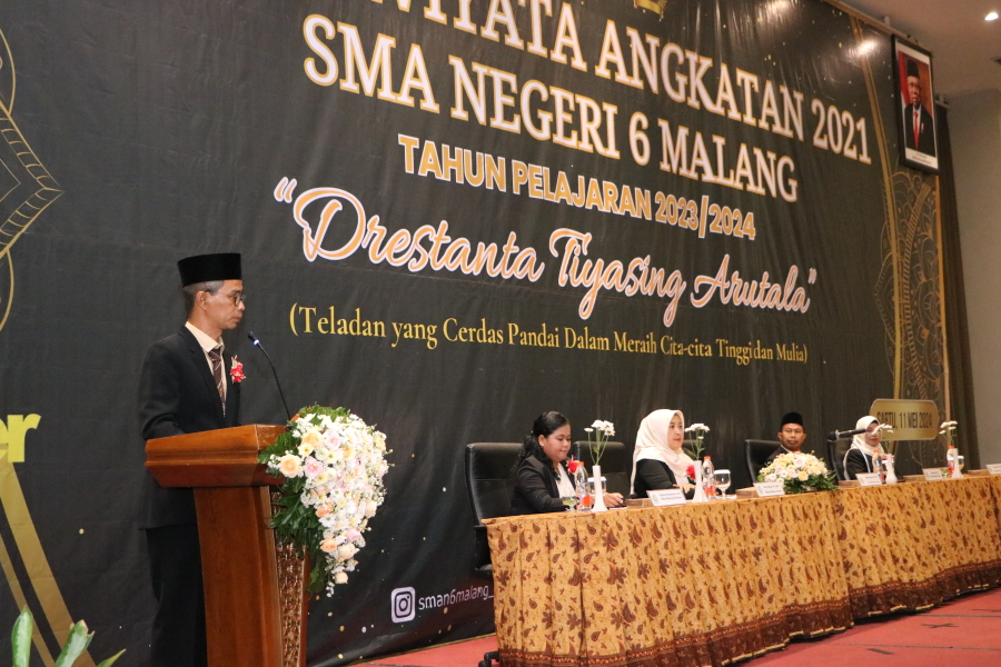 Dengan mengusung tema Drestanta Tiyasing Aruntala yang berarti Teladan yang Cerdas Pandai Dalam Meraih Cita-cita dan Mulia tersirat harapan semua bapak ibu guru bahwa peserta didik kelas 12 dapat meraih cita-cita dan sukses dimasa depan. Tahun pelajaran 2023/2024 dengan jumlah peserta didik sebanyak 301 peserta dinyatakan LULUS 100% hal ini berkat kerja sama kedua belah pihak antara guru, peserta didik serta kedua orang tua. Selamat dan sukses bagi peserta didik SMA Negeri 6 Malang yang sudah lulus semoga menjadi pribadi yang lebih tangguh dan lebih baik dalam bermasyarakat serta membawa nama baik sekolah. Amiin .. (*msh)