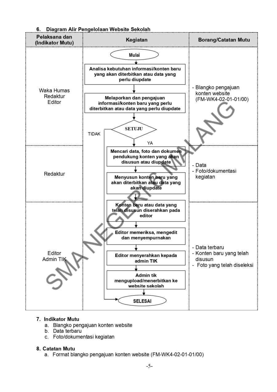 PROSEDUR MUTU - PENGELOLAAN WEBSITE SEKOLAH TAHUN PELAJARAN 2023/2024 Admin SMAN6MLG 16 Oktober 20230 Comments1476 Pembaca Bagikan : Previous postNext post KomentarSearchCategoryBeasiswa ADEM3Info Beasiswa1Informasi16Karir0Kegiatan Peserta Didik2Kewirausahaan2Pengalaman siswa2Pengumuman0Prestasi1Program Sekolah0Sains dan Teknologi0Tips Belajar1Blog Terbaru 19 Mei 2025SELAMAT ULANG TAHUN IBU KHOFIFAH INDAR PARAWANSA 25 Maret 2025PRESTASI PESERTA DIDIK SMA NEGERI 6 KOTA MALANG LOLOS J.. 19 Maret 2025INFORMASI SPMB 2025 13 Maret 2025PESANTREN RAMADHAN SMA NEGERI 6 KOTA MALANG 05 Februari 2025PAMERAN KOLABORASI SENI BUDAYA DAN PKWUPopulerJurusan Sastra Indonesia: Materi Kuliah dan Peluang Ker.. 19 November 2020PAMERAN KOLABORASI SENI BUDAYA DAN PKWU 05 Februari 2025HEROES #3 PUNCAK ACARA HUT SMA NEGERI 6 MALANG 26 Agustus 2024KEGIATAN THE BEE (BOST EMPLOYEE ENGANGEMENT) 16 Desember 2024NATIONAL APPLIED SCIENCE PROJECT OLYMPIAD 17 Oktober 2023DownloadPanduan sistem 177.49 KB 21520 DownloadTagssma6sman6ppdbsman6SMA NEGERI 6 MALANGhutke43#sainsRI