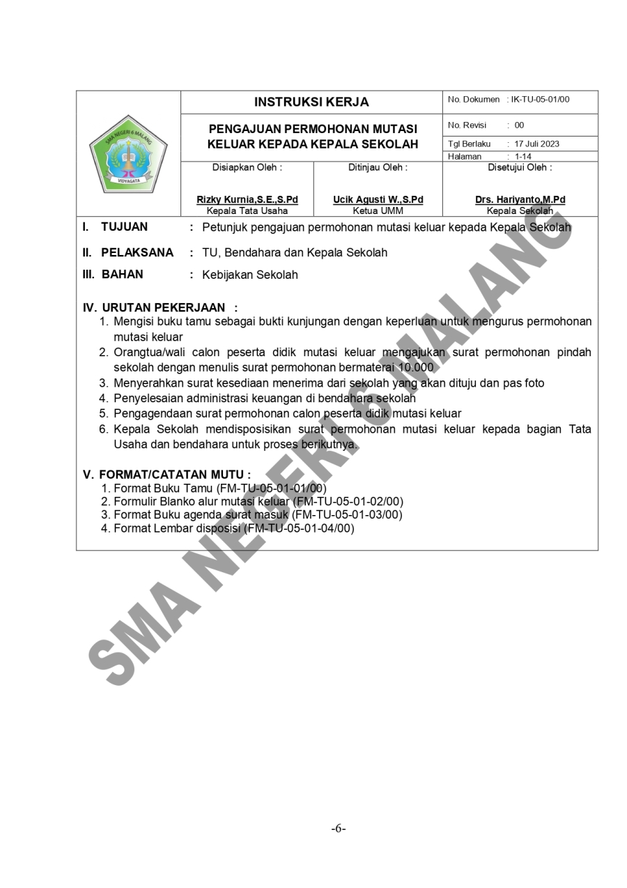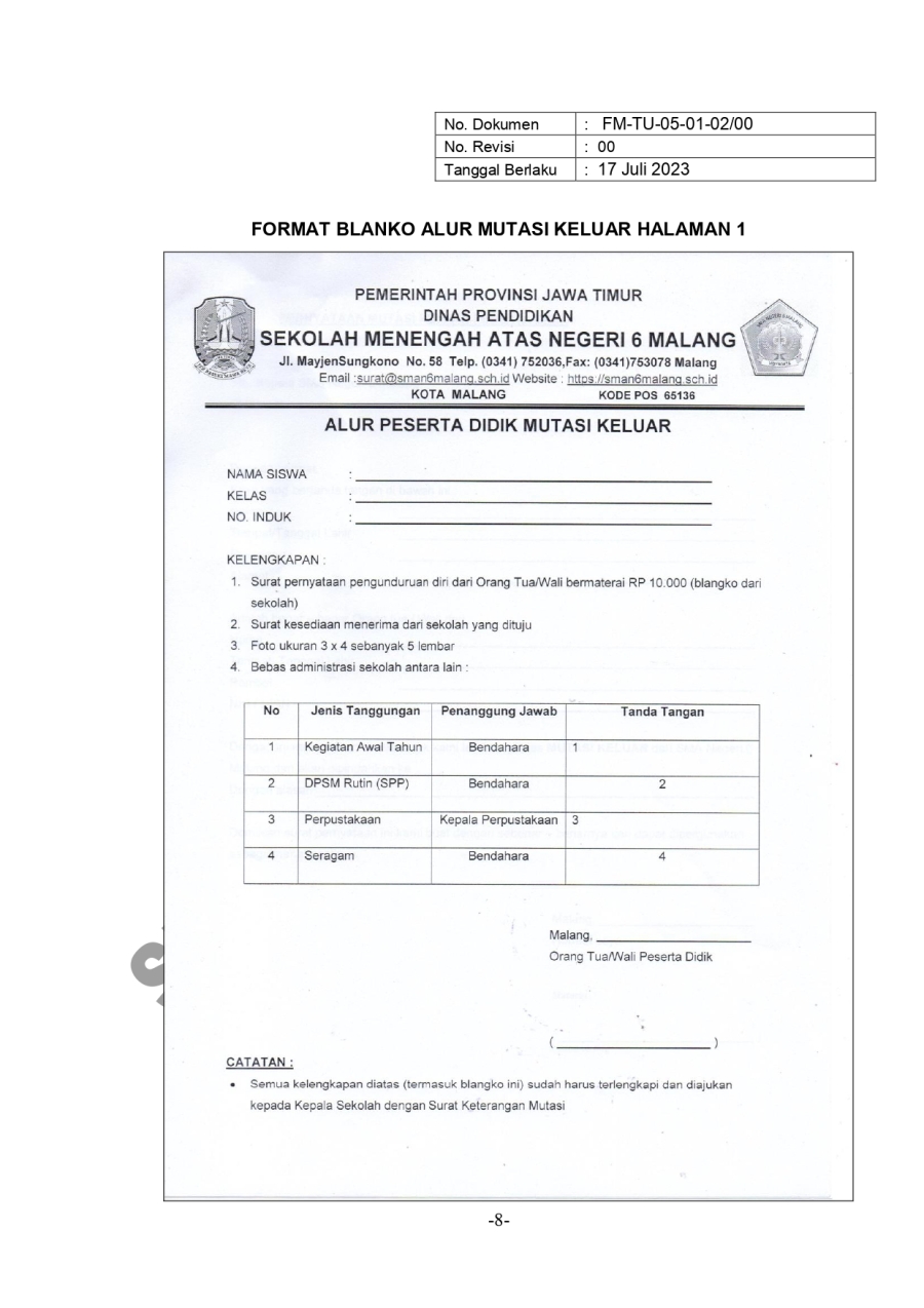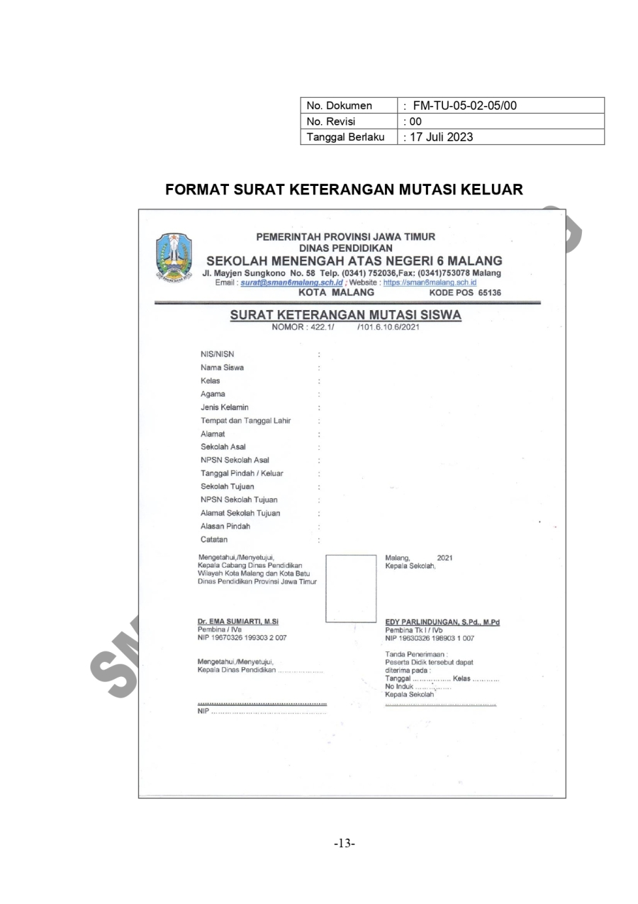 PM. MUTASI KELUAR SMA 6 16 Oktober 20230 Comments1666 PembacaBagikan : Previous postNext post KomentarSearchCategoryBeasiswa ADEM3Info Beasiswa1Informasi16Karir0Kegiatan Peserta Didik2Kewirausahaan2Pengalaman siswa2Pengumuman0Prestasi1Program Sekolah0Sains dan Teknologi0Tips Belajar1Blog Terbaru 19 Mei 2025SELAMAT ULANG TAHUN IBU KHOFIFAH INDAR PARAWANSA 25 Maret 2025PRESTASI PESERTA DIDIK SMA NEGERI 6 KOTA MALANG LOLOS J.. 19 Maret 2025INFORMASI SPMB 2025 13 Maret 2025PESANTREN RAMADHAN SMA NEGERI 6 KOTA MALANG 05 Februari 2025PAMERAN KOLABORASI SENI BUDAYA DAN PKWUPopulerSMARIHEKSA TEBAR PRESTASI 22 Januari 2024KEGIATAN THE BEE (BOST EMPLOYEE ENGANGEMENT) 16 Desember 2024MEMAKNAI PERINGATAN HARI KARTINI 2024 22 April 2024SELAMAT ULANG TAHUN IBU KHOFIFAH INDAR PARAWANSA 19 Mei 2025Jurusan Sastra Indonesia: Materi Kuliah dan Peluang Ker.. 19 November 2020DownloadPanduan sistem 177.49 KB 22592 DownloadTagssman6beasiswaKarirnegerisiswa baru#JATIMppdbppdb