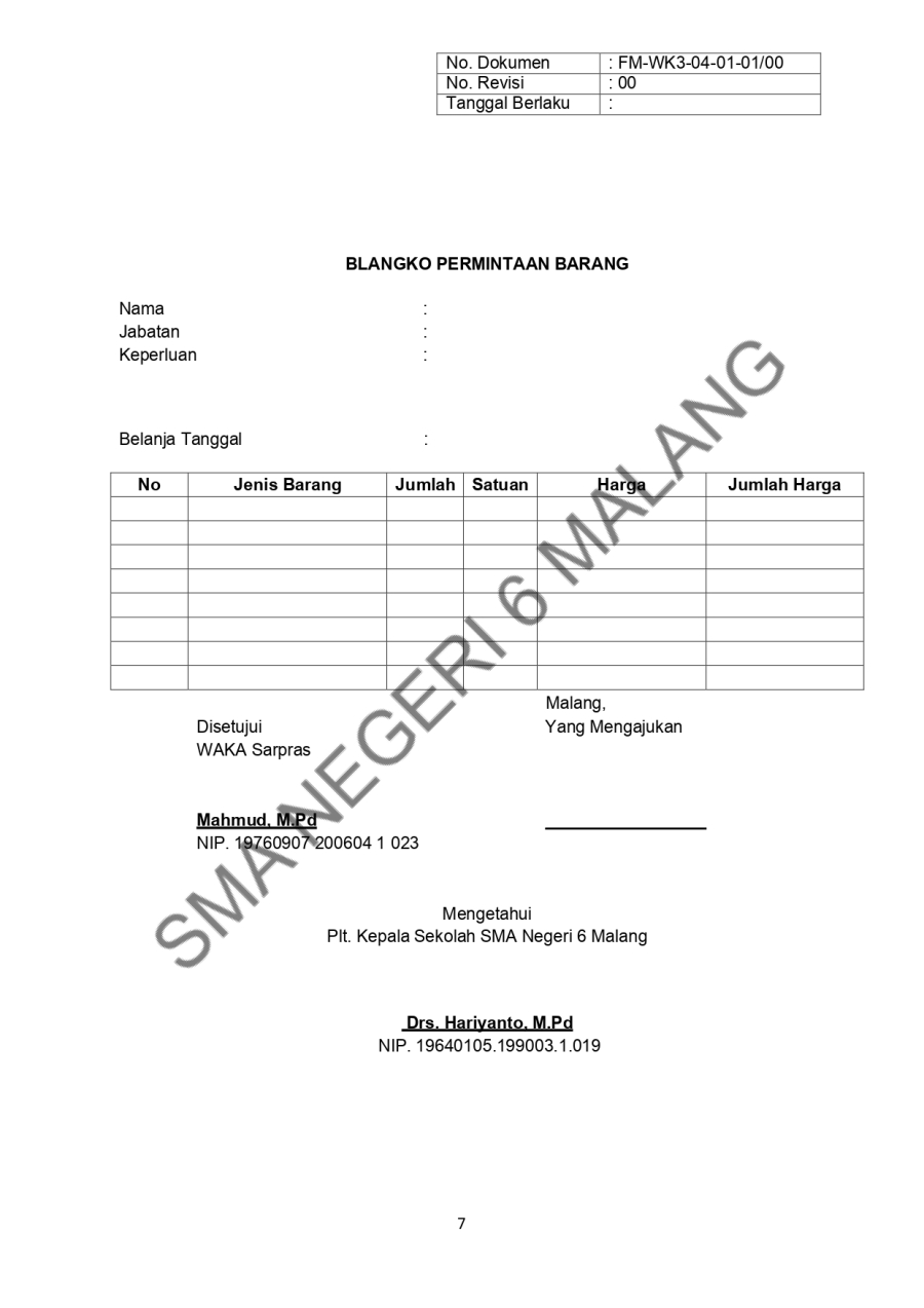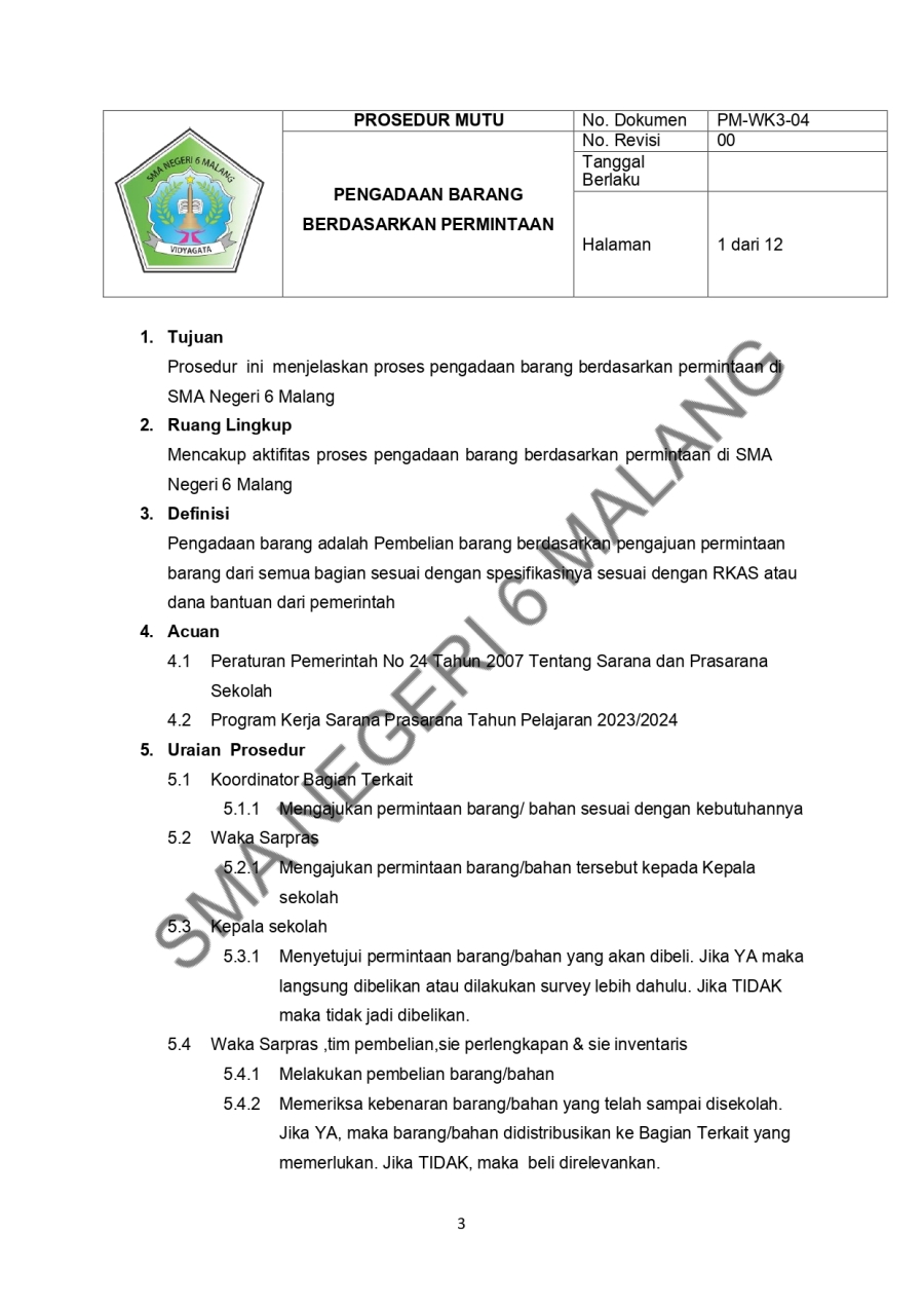 PROSEDUR MUTU - PENGADAAN BERDASARKAN PERMINTAAN TAHUN PELAJARAN 2023/2024 Admin SMAN6MLG 16 Oktober 20230 Comments1599 Pembaca Bagikan : Previous postNext post KomentarSearchCategoryBeasiswa ADEM3Info Beasiswa1Informasi16Karir0Kegiatan Peserta Didik2Kewirausahaan2Pengalaman siswa2Pengumuman0Prestasi1Program Sekolah0Sains dan Teknologi0Tips Belajar1Blog Terbaru 19 Mei 2025SELAMAT ULANG TAHUN IBU KHOFIFAH INDAR PARAWANSA 25 Maret 2025PRESTASI PESERTA DIDIK SMA NEGERI 6 KOTA MALANG LOLOS J.. 19 Maret 2025INFORMASI SPMB 2025 13 Maret 2025PESANTREN RAMADHAN SMA NEGERI 6 KOTA MALANG 05 Februari 2025PAMERAN KOLABORASI SENI BUDAYA DAN PKWUPopulerKEWIRAUSAHAAN SMA NEGERI 6 MALANG KANTIN JAS JUICE SMAR.. 15 Oktober 2023Aplikasi PPDB Online Berbasis Web dengan PHP MySQLi 09 Juli 2021PAMERAN KOLABORASI SENI BUDAYA DAN PKWU 05 Februari 20254 Tips Agar Kegiatan Belajar di Rumah Tidak Membosankan 19 November 2020KEGIATAN THE BEE (BOST EMPLOYEE ENGANGEMENT) 16 Desember 2024DownloadPanduan sistem 177.49 KB 22602 DownloadTagssman6Karir#SMARIHEKSA #SMANEGERI6MALANG #SSD11 #SMARIHEKSASABADESA #PAsman6kurikulum#SMARIHEKSAsman6#SMARIHEKSA