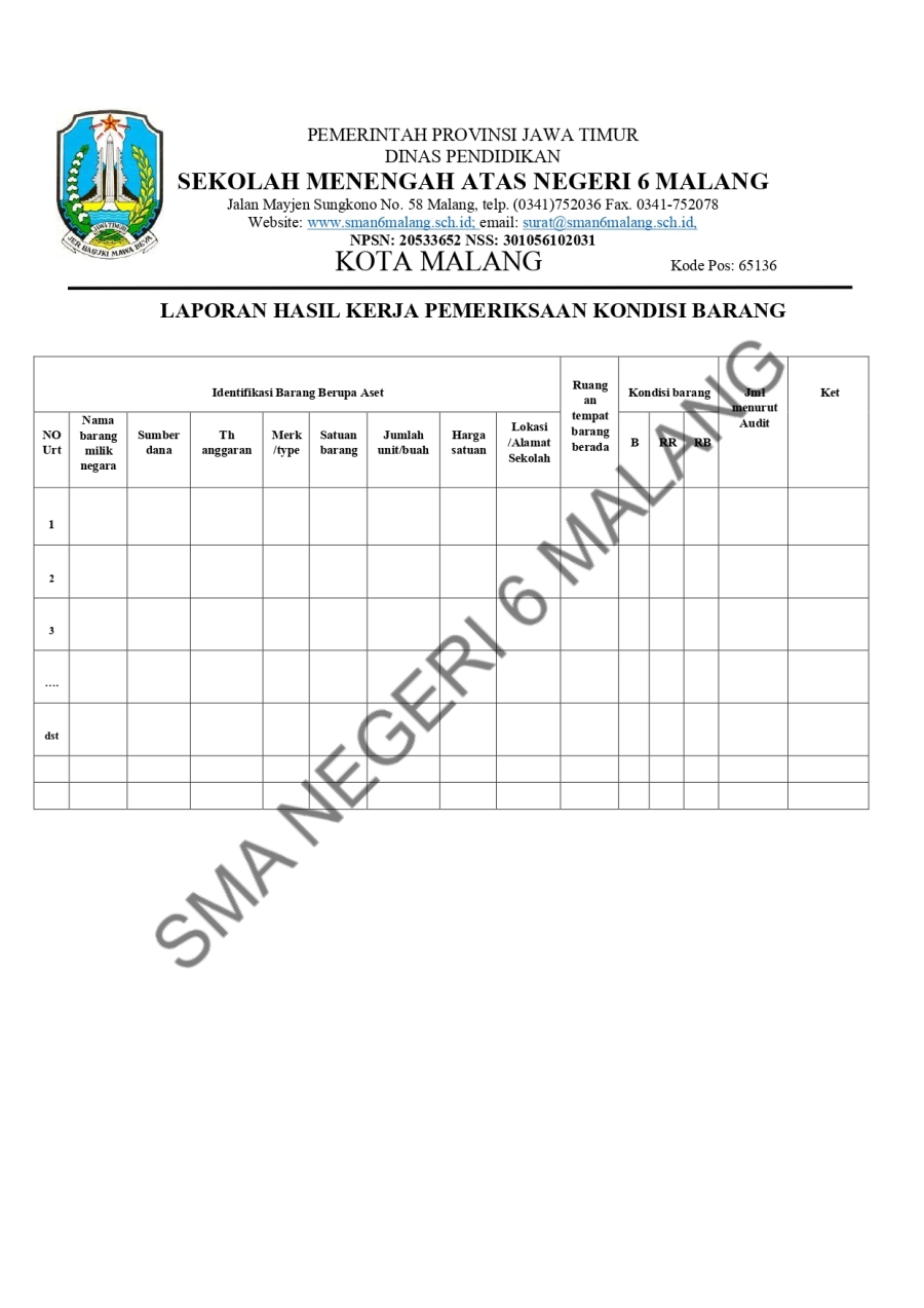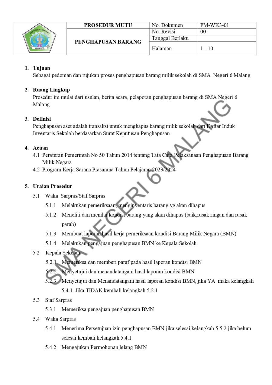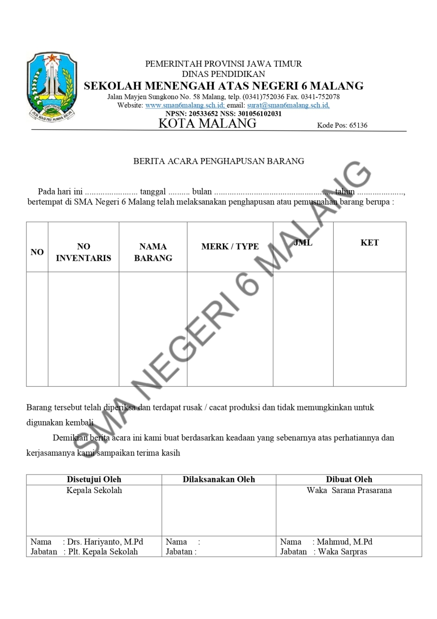 PROSEDUR MUTU - PENGHAPUSAN BARANG TAHUN PELAJARAN 2023/2024 Admin SMAN6MLG 16 Oktober 20230 Comments1614 Pembaca Bagikan : Previous postNext post KomentarSearchCategoryBeasiswa ADEM3Info Beasiswa1Informasi16Karir0Kegiatan Peserta Didik2Kewirausahaan2Pengalaman siswa2Pengumuman0Prestasi1Program Sekolah0Sains dan Teknologi0Tips Belajar1Blog Terbaru 19 Mei 2025SELAMAT ULANG TAHUN IBU KHOFIFAH INDAR PARAWANSA 25 Maret 2025PRESTASI PESERTA DIDIK SMA NEGERI 6 KOTA MALANG LOLOS J.. 19 Maret 2025INFORMASI SPMB 2025 13 Maret 2025PESANTREN RAMADHAN SMA NEGERI 6 KOTA MALANG 05 Februari 2025PAMERAN KOLABORASI SENI BUDAYA DAN PKWUPopulerKESEMPATAN MERAIH BEASISWA YANG TIDAK AKAN AKU SIA-SIAK.. 14 Oktober 2023SEMARAK 44 TAHUN SMARIHEKSA 01 Agustus 2024SELAMAT ULANG TAHUN IBU KHOFIFAH INDAR PARAWANSA 19 Mei 2025KEWIRAUSAHAAN SMA NEGERI 6 MALANG KANTIN JAS JUICE SMAR.. 15 Oktober 2023PAMERAN KOLABORASI SENI BUDAYA DAN PKWU 05 Februari 2025DownloadPanduan sistem 177.49 KB 22603 DownloadTags#SMARIHEKSAsman6Tips#SMARIHEKSAhutSMA NEGERI 6 MALANGsiswa barusiswa baru