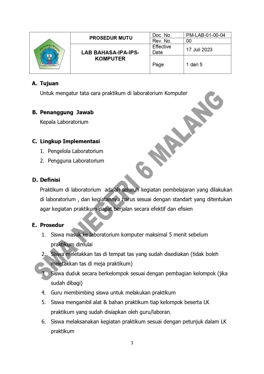 PM. PRAKTIKUM LABORATURIUM SMA 6 16 Oktober 20230 Comments1296 PembacaBagikan : Previous postNext post KomentarSearchCategoryBeasiswa ADEM3Info Beasiswa1Informasi16Karir0Kegiatan Peserta Didik2Kewirausahaan2Pengalaman siswa2Pengumuman0Prestasi1Program Sekolah0Sains dan Teknologi0Tips Belajar1Blog Terbaru 19 Mei 2025SELAMAT ULANG TAHUN IBU KHOFIFAH INDAR PARAWANSA 25 Maret 2025PRESTASI PESERTA DIDIK SMA NEGERI 6 KOTA MALANG LOLOS J.. 19 Maret 2025INFORMASI SPMB 2025 13 Maret 2025PESANTREN RAMADHAN SMA NEGERI 6 KOTA MALANG 05 Februari 2025PAMERAN KOLABORASI SENI BUDAYA DAN PKWUPopulerPENGALAMANKU SEBAGAI KETUA MPK 2022/2023 SMA NEGERI 6 M.. 25 Oktober 2023Jurusan Sastra Indonesia: Materi Kuliah dan Peluang Ker.. 19 November 2020NATIONAL APPLIED SCIENCE PROJECT OLYMPIAD 17 Oktober 2023PAMERAN KOLABORASI SENI BUDAYA DAN PKWU 05 Februari 2025PESANTREN RAMADHAN SMA NEGERI 6 KOTA MALANG 13 Maret 2025DownloadPanduan sistem 177.49 KB 22637 DownloadTagsrepatriasi#SMARIHEKSA #SMANEGERI6MALANG #SSD11 #SMARIHEKSASABADESA #PARIppdbsman6hut#SMARIHEKSA#GUBENUR