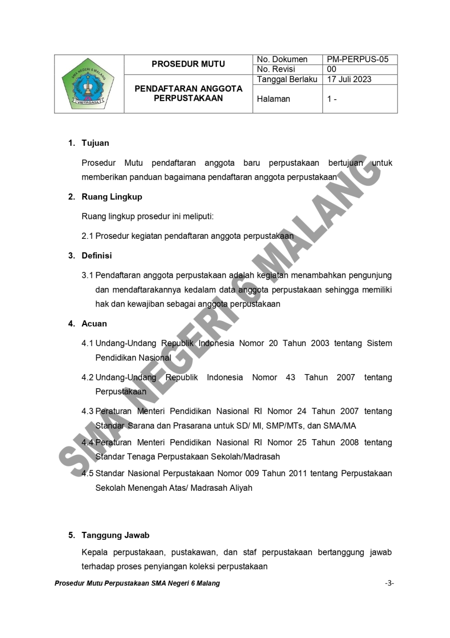 PM. PENDAFTARAN ANGGOTA PERPUSTAKAAN SMA 6 16 Oktober 20230 Comments1109 PembacaBagikan : Previous postNext post KomentarSearchCategoryBeasiswa ADEM3Info Beasiswa1Informasi16Karir0Kegiatan Peserta Didik2Kewirausahaan2Pengalaman siswa2Pengumuman0Prestasi1Program Sekolah0Sains dan Teknologi0Tips Belajar1Blog Terbaru 19 Mei 2025SELAMAT ULANG TAHUN IBU KHOFIFAH INDAR PARAWANSA 25 Maret 2025PRESTASI PESERTA DIDIK SMA NEGERI 6 KOTA MALANG LOLOS J.. 19 Maret 2025INFORMASI SPMB 2025 13 Maret 2025PESANTREN RAMADHAN SMA NEGERI 6 KOTA MALANG 05 Februari 2025PAMERAN KOLABORASI SENI BUDAYA DAN PKWUPopulerSELAMAT ULANG TAHUN IBU KHOFIFAH INDAR PARAWANSA 19 Mei 2025MEMAKNAI PERINGATAN HARI KARTINI 2024 22 April 2024SMARIHEKSA TEBAR PRESTASI 22 Januari 2024SEMARAK 44 TAHUN SMARIHEKSA 01 Agustus 2024SELEKSI NASIONAL BERDASARKAN PRESTASI (SNBP) 2024 26 Maret 2024DownloadPanduan sistem 177.49 KB 22640 DownloadTagssmariheksasiswa barusma6siswa barusman6InformasippdbKarir
