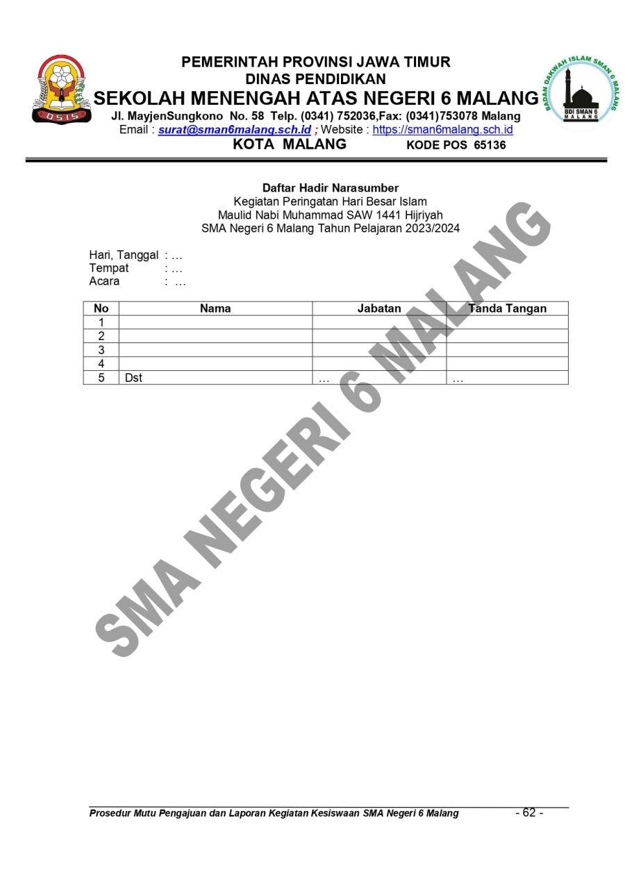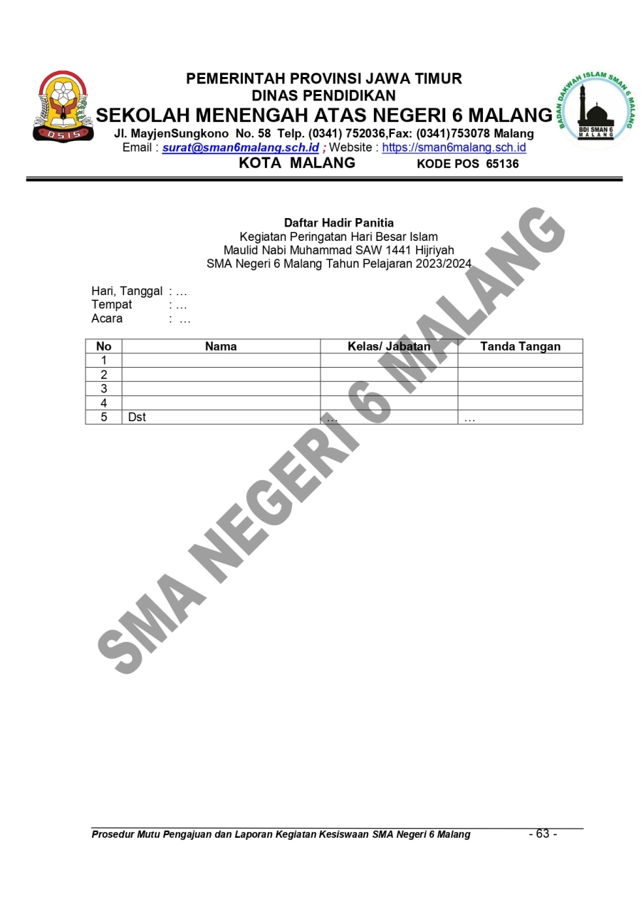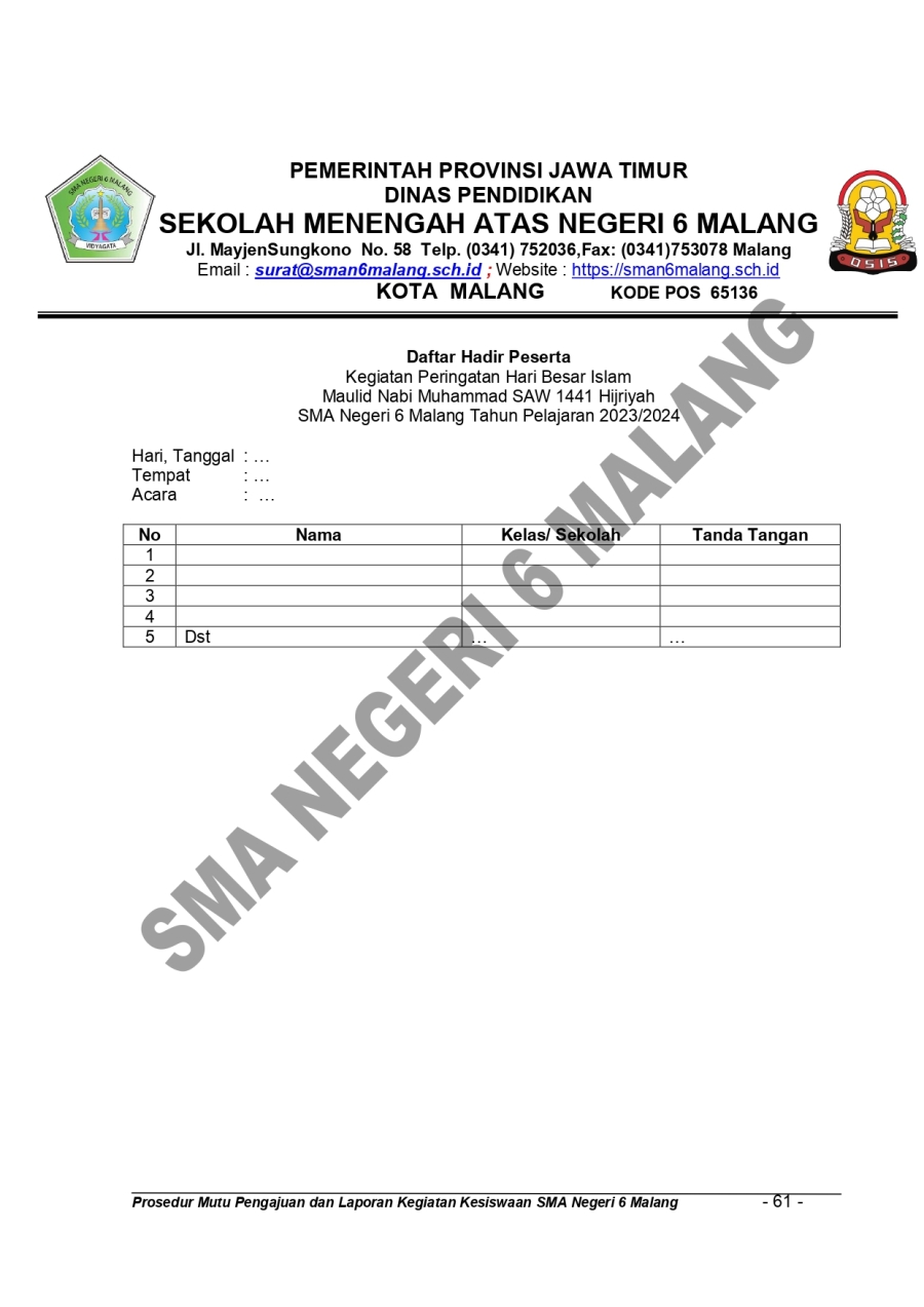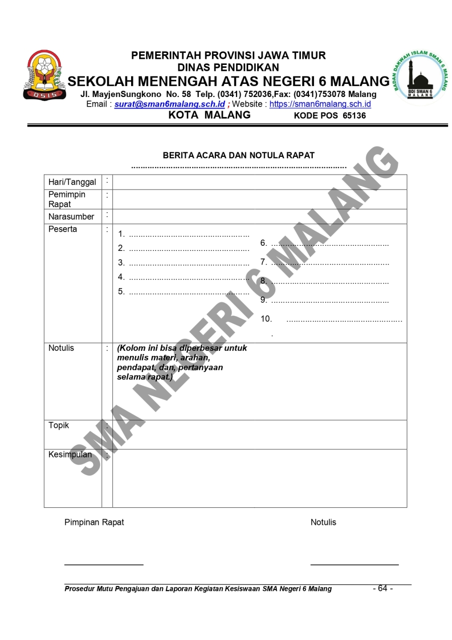PM. PENYUSUNAN PROPOSAL DAN LAPORAN SMA 6 16 Oktober 20230 Comments1633 PembacaBagikan : Previous postNext post KomentarSearchCategoryBeasiswa ADEM3Info Beasiswa1Informasi16Karir0Kegiatan Peserta Didik2Kewirausahaan2Pengalaman siswa2Pengumuman0Prestasi1Program Sekolah0Sains dan Teknologi0Tips Belajar1Blog Terbaru 19 Mei 2025SELAMAT ULANG TAHUN IBU KHOFIFAH INDAR PARAWANSA 25 Maret 2025PRESTASI PESERTA DIDIK SMA NEGERI 6 KOTA MALANG LOLOS J.. 19 Maret 2025INFORMASI SPMB 2025 13 Maret 2025PESANTREN RAMADHAN SMA NEGERI 6 KOTA MALANG 05 Februari 2025PAMERAN KOLABORASI SENI BUDAYA DAN PKWUPopulerSELAMAT ULANG TAHUN IBU KHOFIFAH INDAR PARAWANSA 19 Mei 2025Aplikasi PPDB Online Berbasis Web dengan PHP MySQLi 09 Juli 2021PENGALAMANKU SEBAGAI KETUA MPK 2022/2023 SMA NEGERI 6 M.. 25 Oktober 2023JARI TINTA PEMULA 16 Februari 2024KEWIRAUSAHAAN SMA NEGERI 6 MALANG KANTIN JAS JUICE SMAR.. 15 Oktober 2023DownloadPanduan sistem 177.49 KB 22640 DownloadTagsSMA NEGERI 6 MALANGhutke78vidyagata#SMARIHEKSAsman6#sains#GUBENURsmariheksa