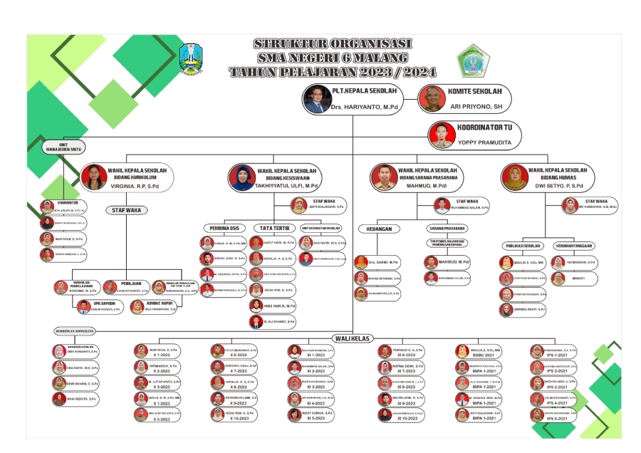 STRUKTUR ORGANISASI SMA NEGERI 6 MALANG TAHUN PELAJARAN 2023 / 2024 SMA 6 16 Oktober 20230 Comments4502 PembacaBagikan : Previous postNext post KomentarSearchCategoryBeasiswa ADEM3Info Beasiswa1Informasi16Karir0Kegiatan Peserta Didik2Kewirausahaan2Pengalaman siswa2Pengumuman0Prestasi1Program Sekolah0Sains dan Teknologi0Tips Belajar1Blog Terbaru 19 Mei 2025SELAMAT ULANG TAHUN IBU KHOFIFAH INDAR PARAWANSA 25 Maret 2025PRESTASI PESERTA DIDIK SMA NEGERI 6 KOTA MALANG LOLOS J.. 19 Maret 2025INFORMASI SPMB 2025 13 Maret 2025PESANTREN RAMADHAN SMA NEGERI 6 KOTA MALANG 05 Februari 2025PAMERAN KOLABORASI SENI BUDAYA DAN PKWUPopulerXII BSBU, PETUGAS APEL PERTAMA TAHUN AJARAN 2023/2024 11 September 2023PESANTREN RAMADHAN SMA NEGERI 6 KOTA MALANG 13 Maret 2025Jurusan Sastra Indonesia: Materi Kuliah dan Peluang Ker.. 19 November 2020PAMERAN KOLABORASI SENI BUDAYA DAN PKWU 05 Februari 2025JARI TINTA PEMULA 16 Februari 2024DownloadPanduan sistem 177.49 KB 22648 DownloadTagssman6sman6programsman6#SMARIHEKSAkurikulum#SMARIHEKSAhut